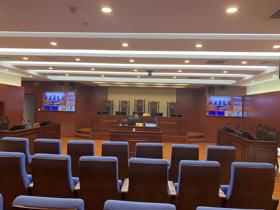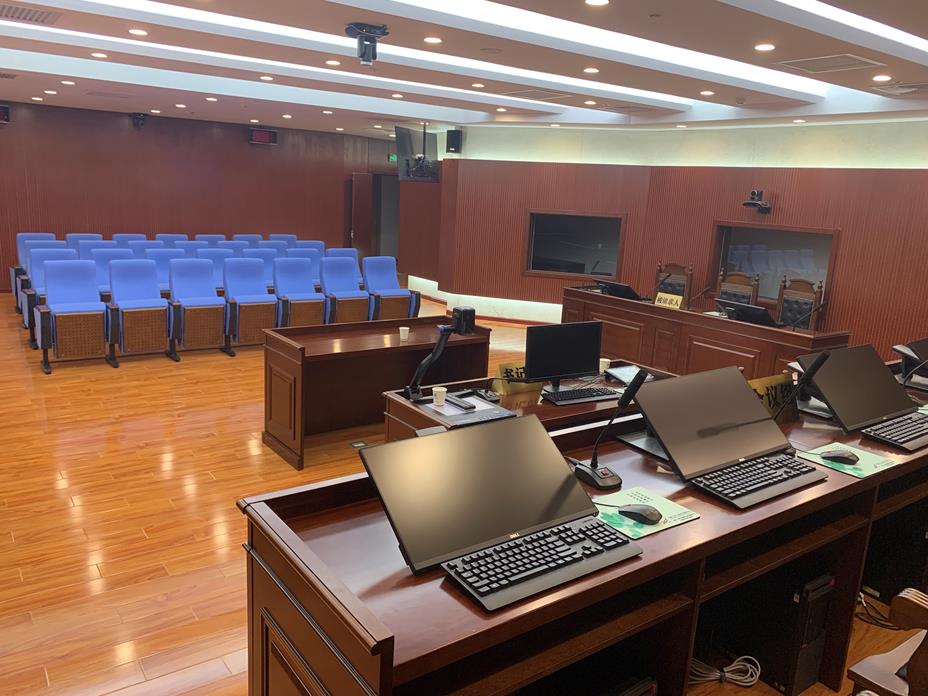 3、审理庭内的旁听人员通过庭内大屏幕显示设备;审理庭外的公众通过互联网系统,对公开审理的各类案件实现透明公开的了解和监督。