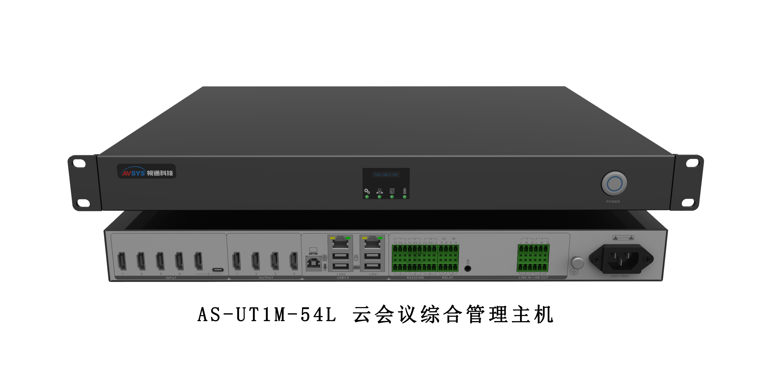 AS-UT1M-54云会议综合管理主机,是一款针对中小型会议室设计的产品,主机集高清视频矩阵,数字音频处理,中控,远程视频会议,录播以及智能抠像功能于一体。主机除对本地会议室设备进行可视化综合管理外,同时还具备与第三方视频会议或MCU多方互联互通的能力,如华为,中兴,Polycom等厂家的视频会议产品。以及主机内置了智能抠像功能,搭配会议摄像机、PC(培训PPT),通过主机内部抠像算法处理将人物抠像画面与PPT画面叠加输出,结合云视频会议软件(如:腾讯、钉钉、Skype、ZOOM)可进行远程会议直播培训。该产品广泛应用于中小型会议室、远程视频会议、会议直播培训等应用场景。